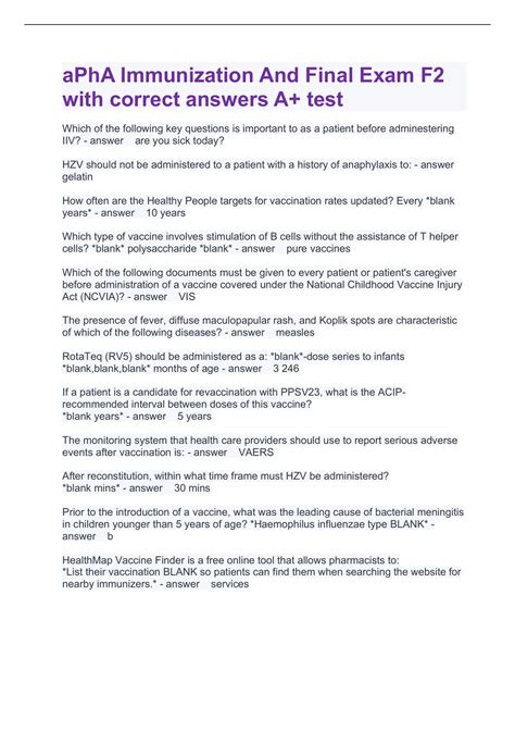 Read answers apha immunization test Epub